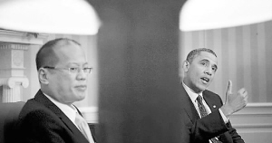 阿基诺三世与美国总统奥巴马的会谈是在午宴之后举行的,会谈相对简短,根据白宫方面提供的日程,只持续了不到50分钟,之后两人没有举行联合记者招待会。白宫在会谈后发表声明说,奥巴马重申美国支持菲律宾建立最小规模可靠防御力量的努力。声明提到了美国最近向菲律宾海军交付第二艘美国海岸警卫队巡逻艇以及正在增加的双边演习和训练项目。