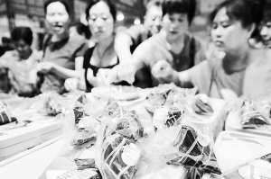 在展会现场,散装、简装粽子展台前人头攒动,消费者争相选购;而包装精美的套装、篮装、盒装粽子却乏人问津。一位消费者告诉记者,“盒装粽子至少要上百元,只有送礼的才会买,自己吃还是买散装的更实惠。”新华社记者 李健 摄