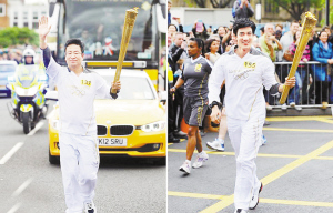 新华社英国曼彻斯特6月23日体育专电 伦敦奥运会火炬接力23日从英格兰西北部的莱瑟姆圣安妮进入足球名城曼彻斯特。央视主持人白岩松、音乐人王力宏等五位华人参加了当天的传递。数百名中国观众到现场呐喊助威。