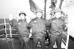 24日上午,“蛟龙”号潜航员在海底向“神舟九号”祝福:祝愿景海鹏、刘旺、刘洋3位航天员与“天宫一号”对接顺利!祝愿我国载人航天、载人深潜事业取得辉煌成就!
