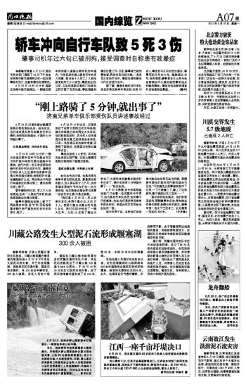 轿车冲向自行车队致5死3伤