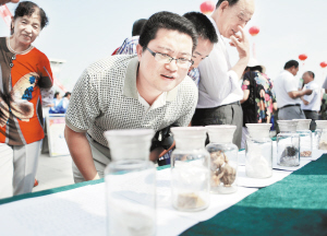 6月26日,在宁夏银川光明广场,市民在学习辨别各类毒品。当日是第十七个“国际禁毒日”,其主题是“抵制毒品,参与禁毒”。全国多地举行大型禁毒宣传活动,缉毒干警纷纷走上街头,通过毒品展示、分发宣传手册等方式向广大市民介绍毒品的危害和禁毒知识。新华社发