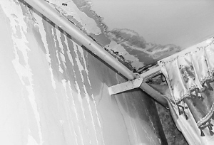 7月9日上午,记者在铁路工程处家属院一楼王先生的家中看到,家具因受潮表面油漆开始脱落,颜色也变了样,还带有霉点。