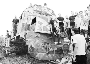 7月17日,人们聚集在开罗市郊的列车出轨事故现场。
