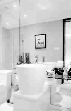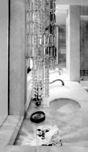 卫生间的蓝色倒是那么单纯,纯蓝纯白的组合不用任何备注,都是非常夏日的元素符号。但那些装在各式各样瓶子里的化妆品洗护用品,呈现着撩人的玫瑰色、醉人的香槟色、贞洁的粉红色、天真的嫩黄色,一片姹紫嫣红的喧嚷,让这片海洋不那么寂寞。 (菲紫)