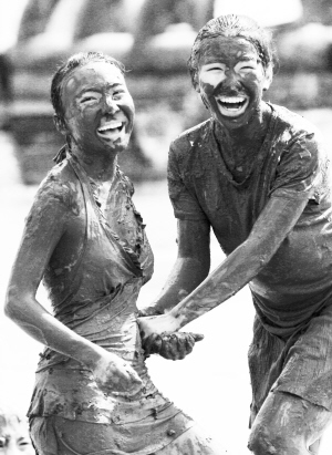 当日,浙江省岱山县秀山岛在200多亩的天然海泥公园内举办夏日“海泥狂欢节”,举行泥上摔跤、速滑和抓鸭等趣味活动,来自全国各地的游客和当地居民数千人参加这场海泥狂欢。新华社记者 崔新钰 摄