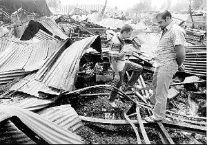 7月23日,伊拉克塔季,两名伊拉克男子在爆炸后的废墟里。