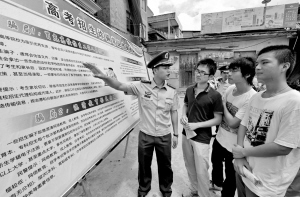 7月24日,连江县边防大队民警在晓澳镇向应届考生讲解如何防范高考招生诈骗伎俩。