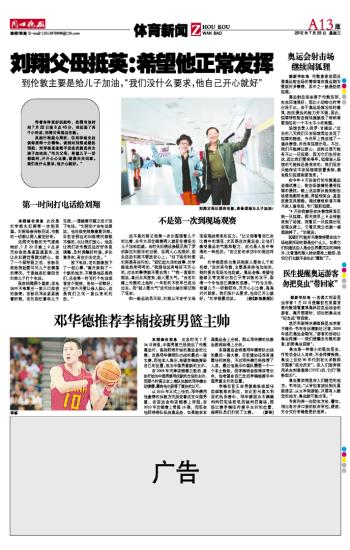 刘翔父母抵英:希望他正常发挥