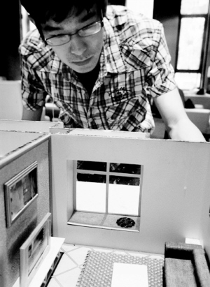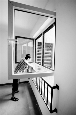 记者与几个业主研究了12层窗户,造成窗户小的原因,是11层有飘窗,12层没有,而11层的飘窗顶盖上沿与12层窗户下层持平,这就使得雨水可以横流浸泡12层的窗棂,建筑时不得已将窗户下部取消改成外墙以避免雨水进入。