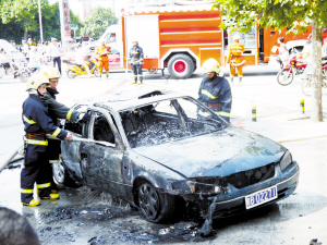 本报讯 昨天14时20分许,一辆小轿车经过周口市区七一中路与六一路交叉口时发生自燃,导致该路段交通拥堵近1个小时。
