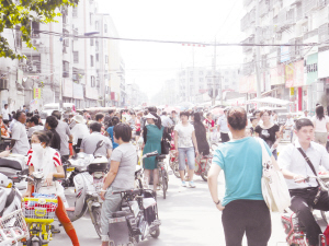 昨日11时30分,六一路与育新路交叉路口,记者看到:路口人头攒动,骑着自行车、电动自行车的家长们挤在六一路上等待着学生放学(如图)。正在路口指挥交通的交警李警官说:“因为接学生的家长非常多,周一到周五每天11时左右和16时左右这里最堵……家长们应该在不影响交通的地方等待学生。”