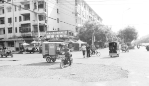 路面状况:路面坑洼不平,三四个小坑连在一起,最深处约有40厘米,最浅处也有十几厘米