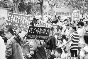 9月4日,记者在学生中午和下午放学的时间,两次来到周口实验小学门口,看到许多前来接孩子的家长和举着写有“某某午托班”字样牌子的人。学生放学走出校门到达指定位置后,学校老师下令解散。不到一会儿,一位“午托班”老师身边就聚集了十多位学生。