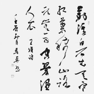 因为早年有硬笔的底子,马奔的书法结体功力相当过硬,《书法导报》副总编辑孟会祥在为马奔新书《马奔行草书唐宋诗一百首》所写序言中说:“许多硬笔起家的书法家,专讲结构,轻忽用笔,字只得间架,不见血肉。马奔的字则骨肉匀停,与其人的温文尔雅一样,他的字不怒张,不软弱,不造作,彬彬然而可亲。当年,他的字的最大缺点是虽饶姿态,而行气不足;虽平正雅宜,而略歉古味……近日,马奔兄寄来《马奔书毛泽东诗词三十七首》,看后让我大吃一惊,洋洋长卷,始终不懈,写得蕴藉风流。特别是用笔方面,强调了‘二王’帖法,使转自如,八面出锋,点画中更有嚼头了。而行间上下贯串,起伏跌宕,也如水流花开,云卷云舒。”