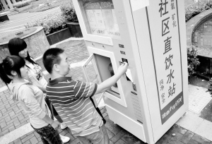 昨日,几位市民从直饮水设备中刷卡取水。据了解,周口市区十几个生活小区都安装有这种直饮水设备,其方便快捷的特点受到不少市民欢迎。记者 沈湛 摄