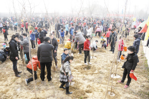 | 3月17日上午,小记者及其家长共约2000人,在川汇生态园挥锨培土、浇灌树苗,共植“幸福林”。两个多小时里,全家总动员家庭种下“幸福林”。 |