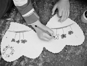 10月16日,孩子们在社区活动现场绘制贺卡。