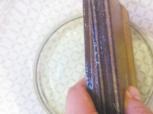 昨天上午,记者在位于市区恒丰建材城的绿牡丹木地板周口专卖店看到前来咨询的客户络绎不绝,工作人员向大家演示了绿牡丹不怕水、不怕火的优点,记者看到,同样的地板,绿牡丹地板经过火烤后用抹布擦拭后仍然焕然一新,而另外某知名品牌的木地板经过火烤后,很快表层的漆就被烧掉。在专卖店里,一块经过水泡长达半年的地板吸引了众多消费者的注意,记者发现这块地板捞上后一点也没有发生变化(上图)。