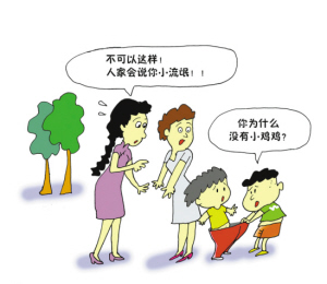 梁伟真通过观察,发现6岁以下的孩子只是出于好奇,才会提出有关性的问题,但他们并没有成人的性概念,孩子的年龄越小越是如此。比如说玩小鸡鸡、男孩女孩之间互看生殖器,家长们看到了往往会反应过激,有许多联想——手淫、耍流氓、女孩子吃亏了,等等。其实,这些都是成人世界里一些不太健康的性观念,大人们把这些强加给了孩子们。“孩子们不过是出于单纯的好奇心,家长遮遮掩掩的态度、诡异的表情、慌张的神色,或会令孩子对这些问题更有神秘感,更有好奇心,以不正常的目光去探寻事情的真相;或会让孩子觉得这些是不好的东西,进而使孩子今后不敢再提出这样的问题,更不能正确对待这些问题。”