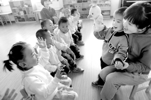 10月30日,残疾人综合服务中心的听障儿童班孩子在上课。