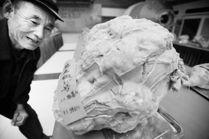 10月30日,一名农民在第五届北京大兴全国甘薯擂台赛上观看“薯王”。