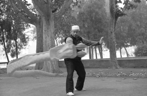昨日,记者在周口人民公园的活动场地看到,一位老人双手握绳,抡臂、转身……挂在空竹上的几米长布制“长龙”,顿时腾空而起,周身盘旋,犹如“飞龙在天”。