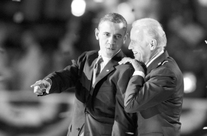 奥巴马(左)与竞选搭档拜登感谢支持者