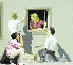 没什么比以假乱真这个词更能形容这些墙画,人物与动物偶然出现在某个角落,有情景,有影子,仿佛活生生存在一般。