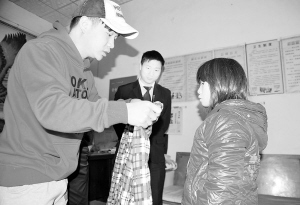 寒冬来临,鹿邑县爱心志愿者开展了“温暖孤儿爱心奉献”活动。图为志愿者王振、孙磊为孤儿送去御寒衣物。通讯员 胡洪涛 连祥工 摄