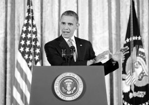 当地时间11月14日,美国总统奥巴马在首都华盛顿出席连任后的首次白宫记者会