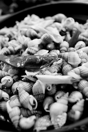 另一种吃法,就是把螺蛳从清水里捞上来,用钳子把一个个螺蛳的屁股拧下来。没了屁股的螺蛳被重新放到有水的盆里“养”着。这时为了进一步清除螺蛳屁股里的一些不洁之物,还要放适量的盐和菜子油在盆里。这种“养”法能不能达到清除不洁之物的目的,我不清楚。这种“养”法有没有科学道理,我也不清楚。反正没了屁股的螺蛳被重新“养”了几小时,便可以放到锅里,添上各种作料焖煮,待作料的香气氤氲满屋,就可以大开吃戒了。捏起那没了屁股的螺蛳送到嘴边,只听哧溜一声,螺蛳壳里的肉尽被吸到了嘴里。此时,品尝螺蛳就像体味人生,感受生活是那样的五彩斑斓一样。