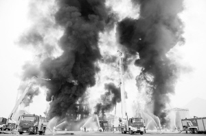 12月6日,消防队员演练扑救“化工厂爆炸”引发的火灾。