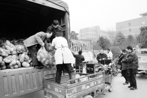 12月12日下午,20吨爱心萝卜运抵淮阳一高,免费发放到学校餐厅、教职工手中,让广大师生感受到浓浓的社会关爱。淮阳一高党总支书记对河南省典当行业协会的善举表示由衷感谢,强调学校将再接再厉,高质量办学。(张强 豆纪锋 摄)
