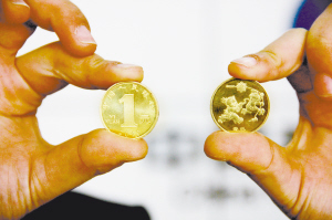 1月9日,一位周口市民展示他刚买的蛇年纪念币(如图)。当日,中国人民银行发行蛇年贺岁普通纪念币。该普通纪念币面额1元,直径25毫米,材质为黄铜合金,发行数量为8000万枚。这枚纪念币与现行流通人民币职能相同,与同面额人民币等值流通。晚报记者 金月全 摄