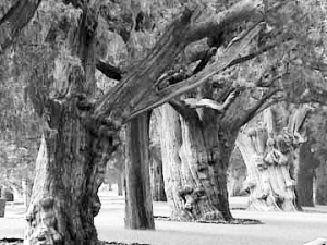 两株古杨树不仅是五里屯村的地理性标志,也是小村一道别致的风景。凡是从两株古杨树下经过的路人无不为树的高大挺拔所折服,常会不由自主地停下来欣赏一番。这正是当地村民值得自豪的地方。但让村民更为自豪的是,正是有了这两株古杨树的遮挡,村里的30余人在一次土匪的杀戮中幸免于难。