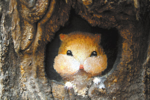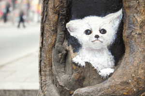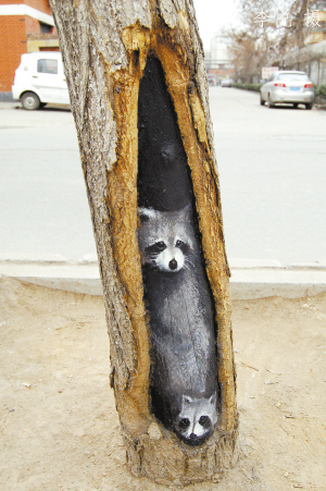 一个人,一个装着简单绘画工具的背包,树洞则是她的画板。她的画让灰蒙蒙的冬天变得缤纷多彩。