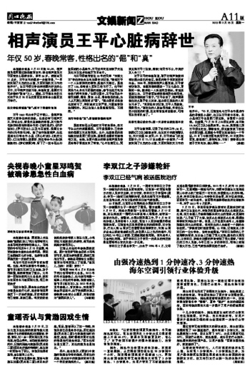 相声演员王平心脏病辞世