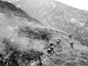 3月8日,山西省原平市中阳乡现峪村小南章山发生山火,原平市消防大队赶赴现场扑救火灾。到达现场后,因风势过大,连片的山头发生火灾,现场指挥部决定休整后于凌晨上山灭火。3月9日凌晨2时左右,消防中队上山灭火,9时15分左右,瞬间风势猛烈,风向突变,阳军、班行行两名同志被卷入火中,班行行随即被战友拉出,被送往医院救治。9时23分,其余官兵发现烧伤的阳军同志,并立即将其送往医院抢救,11时30分到达医院后抢救无效,阳军同志牺牲。 新华社发