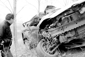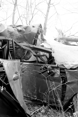 当日14时50分,记者在事发现场看到,一棵直径25厘米左右的杨树被拦腰撞断。距离杨树不远处的路沟里,一辆车牌号为豫PK77**的枣红色轿车车体完全变形,车牌、电瓶、车灯散落一地。