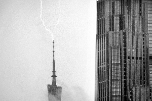 广州白昼如夜暴雨倾盆 广州塔遭雷击