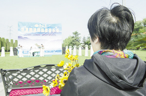4月6日,市民在重庆市华夏陵园内欣赏音乐。