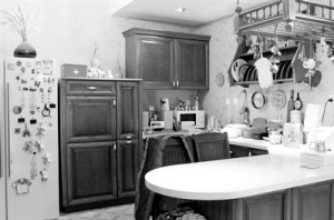 贝贝从小爱看《丁丁历险记》,并且许愿要像丁丁一样周游世界,两人一起走过了40多个国家。在他们的家中,可以看到从世界各地带回来的纪念品:新西兰巨大的松塔、普罗旺斯梭村熏衣草节自己收割的熏衣草、京都樱花季节垂樱下相互亲吻的米老鼠、西班牙的雅致瓷器、越南的丁丁漆画、巴厘岛的神话木雕……连冰箱上挤挤挨挨的冰箱贴,都被女主人编排成了旅行故事。屋中还随处可见自己和朋友们画的小画,以及每次需要“投票选举”才能陪着他们周游世界的毛绒玩具。设计师用心留出了很多地方,让他们陈列这些工艺品。各国的小玩意汇聚在一起,既有特色,又相亲相爱。