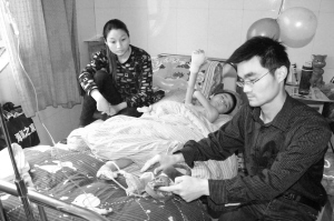 本报讯 4月8日,因触碰高压线灼伤右手掌、“电掉”7根脚趾的太康县独塘乡独西村6岁的宋书信,躺在周口市烧伤医院的病床上已近一个月。宋书信的父母对因看管孩子不周招致如此灾难而愧疚不已,目前他们每天都陪在儿子身边寸步不离(如图)。然而,令宋书信的父母气愤不已的是,有关部门对此事一再推卸责任。