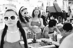 一名陈姓“比基尼”服务员偷偷告诉记者,50多个服务员走了20多个了,因为她们都不愿意穿着比基尼上班,而留下来的打心眼里不想穿比基尼,经过老板的开导和劝说,才羞羞答答换上了。(陈风)
