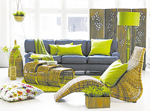 材质上的改变,能让人在触感上直接感受春天,因此,坐具、坐垫、靠包以及肢体容易接触到的边角,成为改变材质的常见地方。添置棉、麻等布艺用品、藤制或木制的小件家具,或者给家具披上一件别样的外衣,都是常见的改造方法。比如布艺沙发质地纯朴柔软,适合春日休闲懒散的感觉;藤制家具(见上图)不仅给人清爽、原始的自然触感,在视觉上,也给空间增添了轻盈的原生态质感。(冯静)