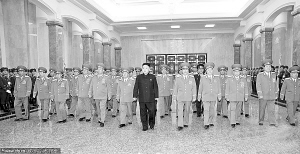 4月15日是朝鲜前领导人金日成诞辰日——“太阳节”,朝鲜领导人金正恩零时带领劳动党中央军事委员会、国防委员会和人民军高级干部参拜了安置金日成和金正日遗体的锦绣山太阳宫。新华社发
