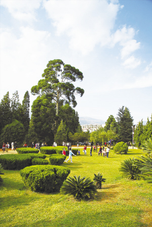 昆明植物园内的茶花园是国内最具特色的专类园之一,共收集茶属植物近40种,云南山茶品种100多个,是国内外最早收集金花茶的专类园之一,这里不定期会举办茶花展。