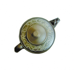 嵌金银的壶,在刻字时要挖得稍深一点,以便烧好后嵌入金银丝。“金银丝比较软,有延展性,嵌入时就拿一个小锤,慢慢敲打进去。力度一定要掌握好,轻则嵌不妥帖,重则壶被敲坏。嵌入后还要进行打磨,使金银丝图案平整光滑。”王志中说。