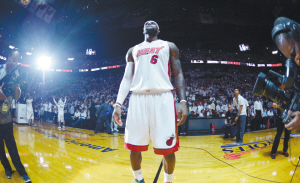 在上一场比赛中,詹姆斯首节只得2分。昨天他进攻欲望非常强烈,首节还有5分14秒时,他反跑切入篮下,韦德适时将球传到,詹姆斯空中接力双手扣篮,热火以25∶20领先。詹姆斯首节6投6中,有12分进账,得分全部来自篮下。